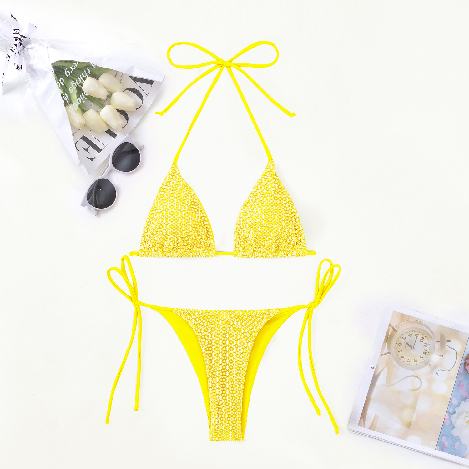 Costum De Baie Vibrant Frutty Summer Yellow Două Piese Cu Sutien Reglabil Și Slip Brazilian Ajustabil