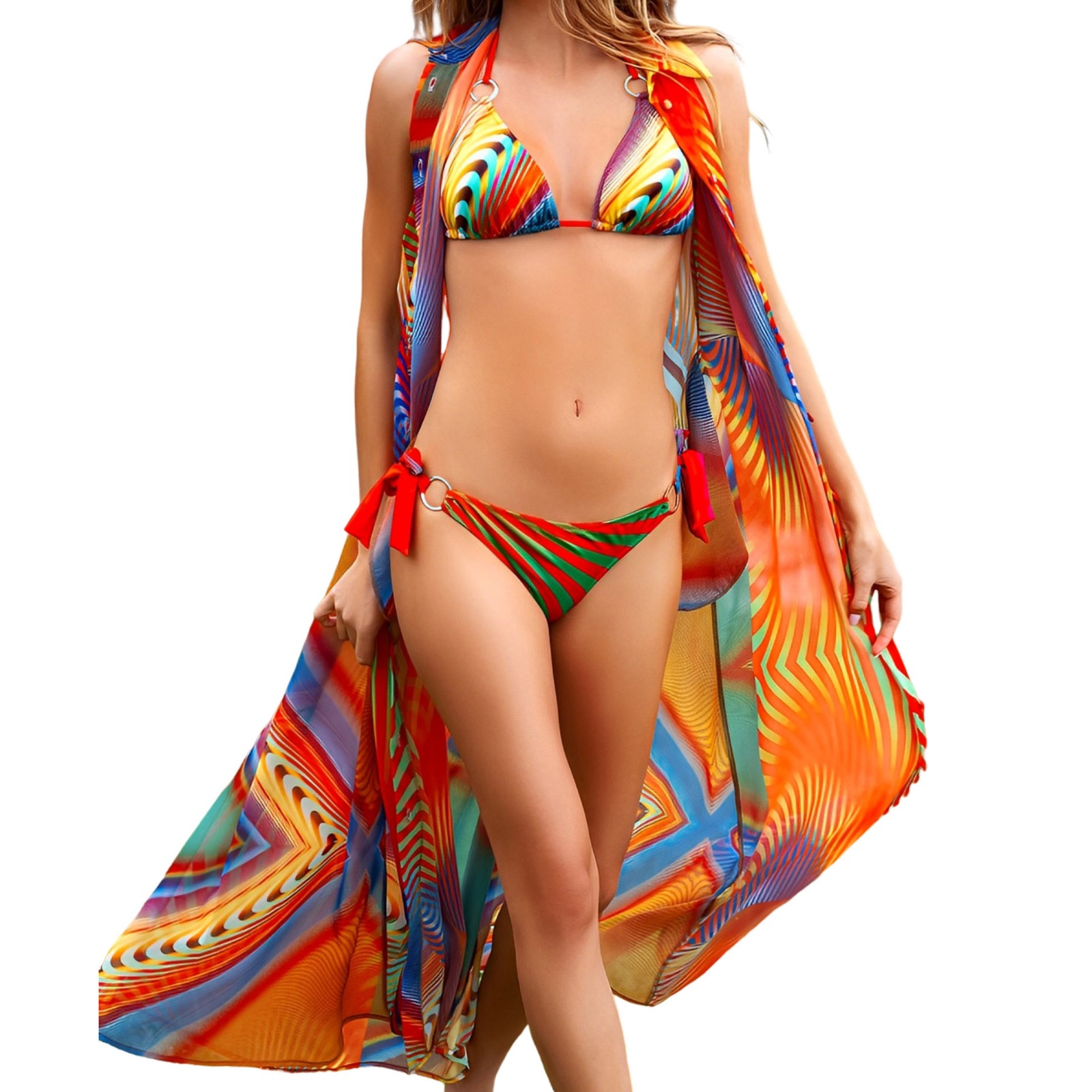 - Halat de Plajă Asortat: Halatul inclus completează perfect setul, oferind un plus de stil și rafinament. Este ușor de purtat și de îndepărtat, ideal pentru momentele de relaxare.