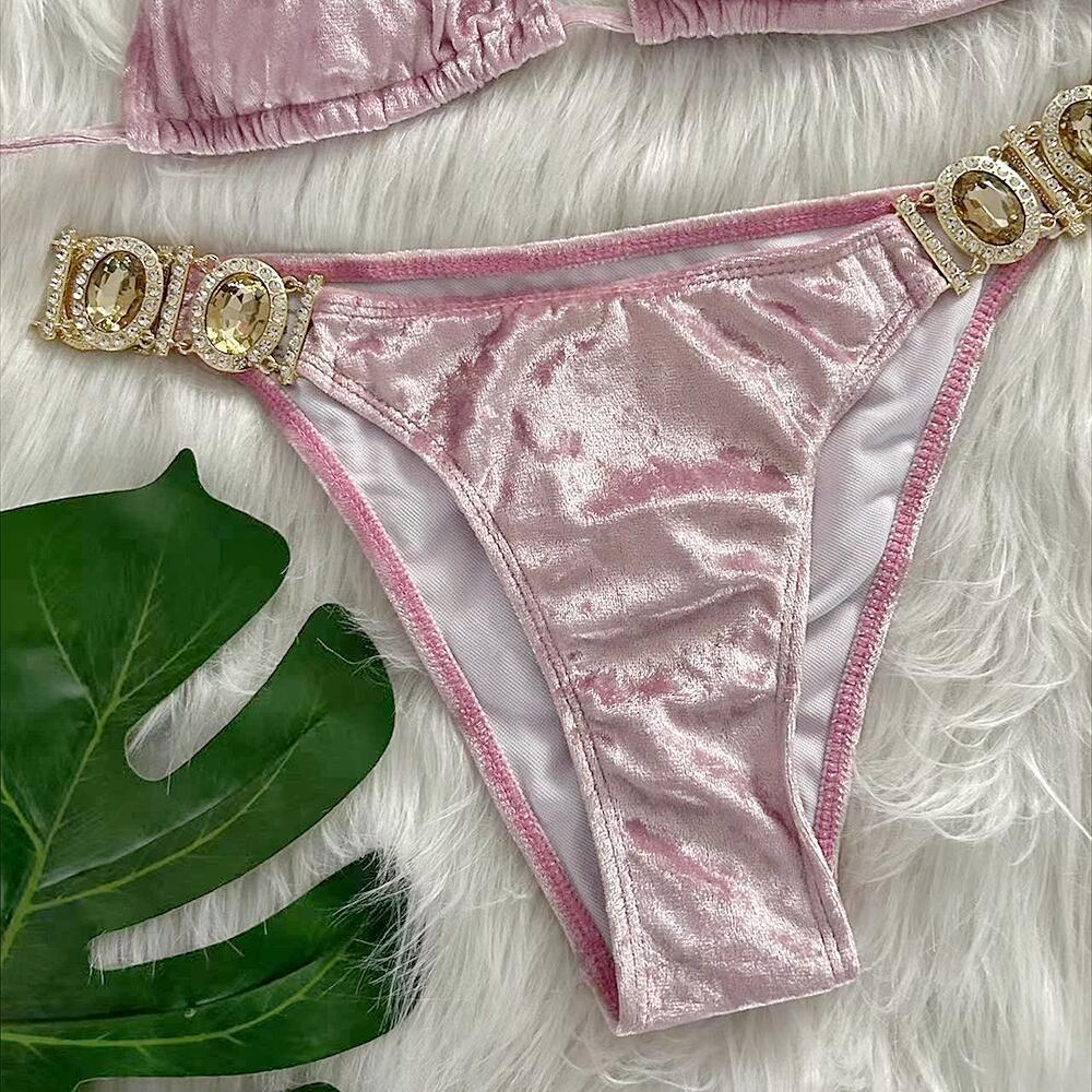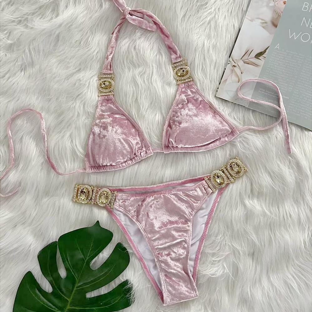 Costum De Baie Sexy Roz Crystal Cu Cristale Strălucitoare Pentru Vară